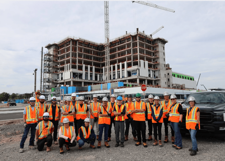 The team explained the many roles involved in building the largest healthcare project in the region. Participants learned about construction project management, structural progress and safety protocols, as well as the installation of mechanical, electrical and plumbing systems.