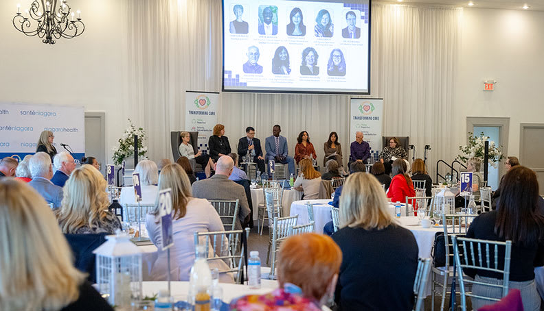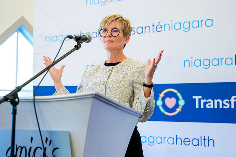 Niagara Health President and CEO Lynn Guerriero shares progress on the hospital system's five-year Strategic Plan, Transforming Care, during a midpoint update event on Oct. 9, 2025.