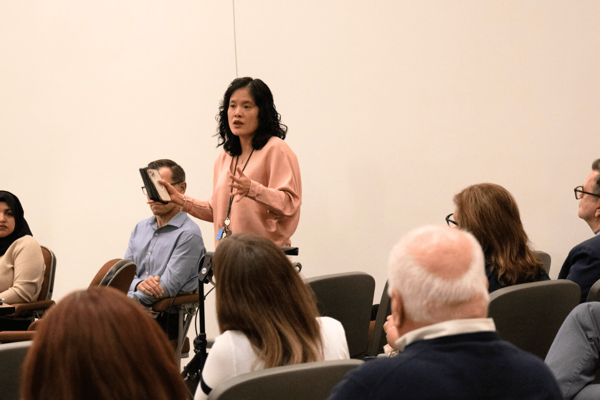 Dr. Jennifer Tsang, Executive Director and Chief Scientist of the Niagara Health Knowledge Institute, shares research updates with Niagara Health Patient Partners at a recent engagement event.