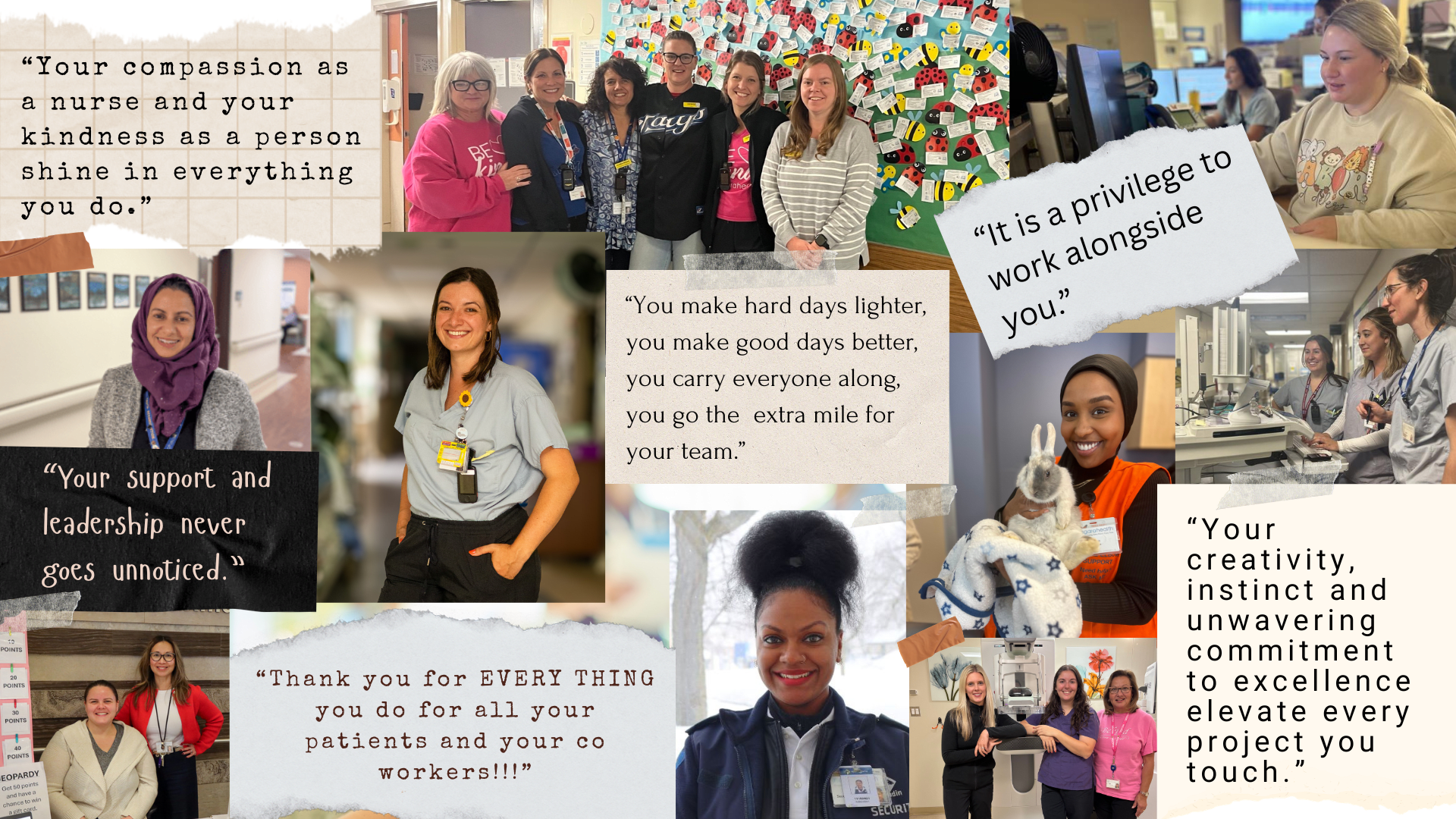 "Your mentoring, kindness, no-nonsense practical approach to nursing is a gift to all your co-workers and patients. So grateful for your delightful presence and the joy you bring."