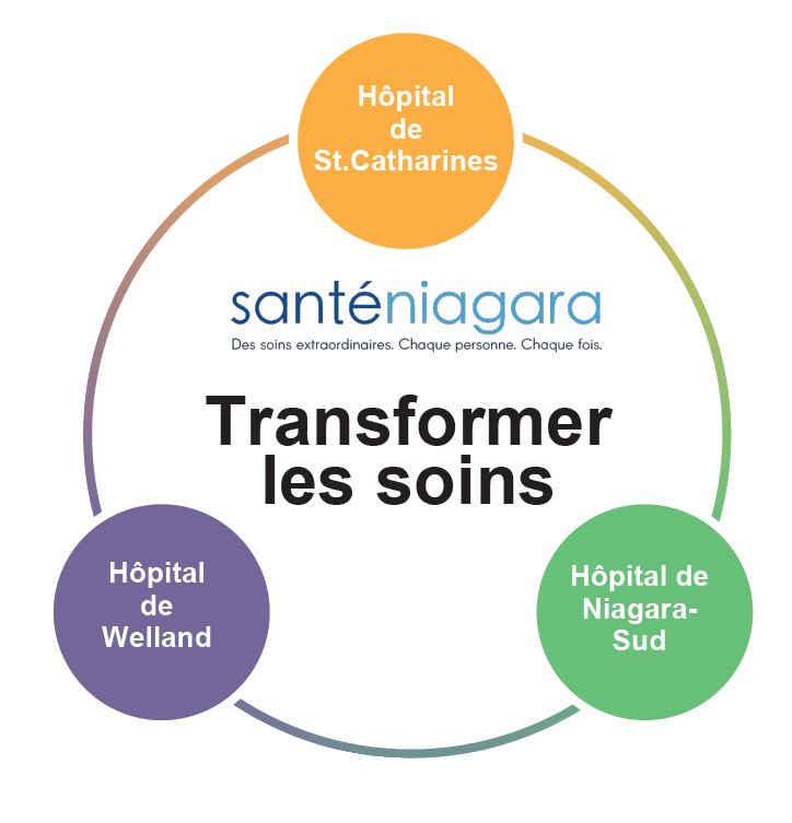 Nous prodiguerons des soins pleinement intégrés aux patients et aux familles de la région de Niagara dans trois hôpitaux, soit ceux de Niagara Falls, de St. Catharines et de Welland, qui constitueront les pierres angulaires du système de santé.