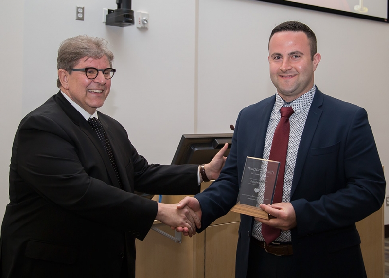 The Niagara Health Awards of Excellence recognize extraordinary service and performance within our organization consistent with our Purpose, Vision and Values. In addition to the President’s Award, which recognizes overall outstanding performance, six additional awards were handed out to outstanding members of the Niagara Health team at last night’s Awards of Excellence event. All of the recipients were nominated by their peers for demonstrating our CORE values (compassion, optimism and ambitious results) and providing extraordinary experiences to our patients and families in specific areas.