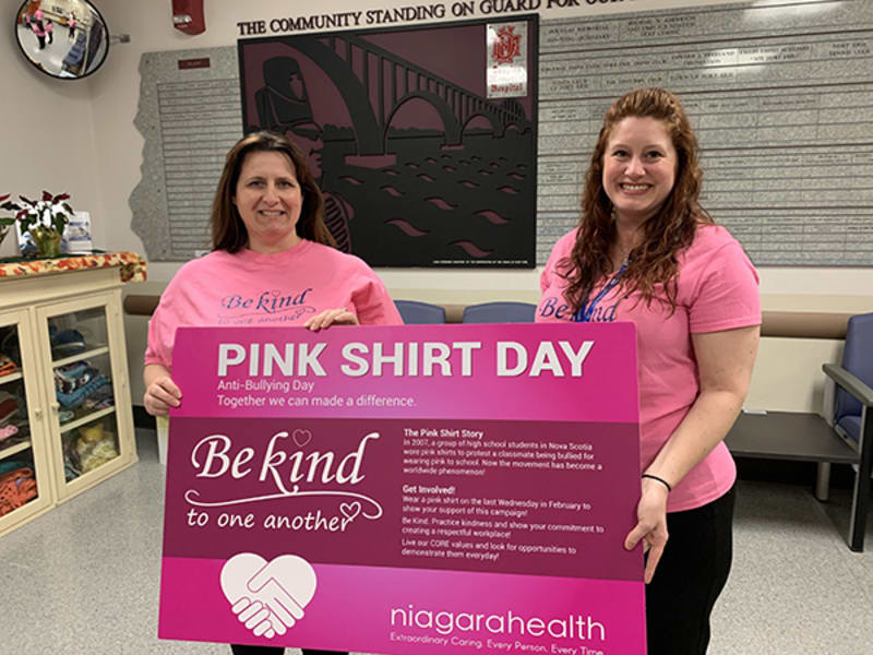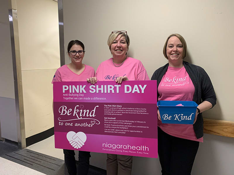 Niagara Health team members were proud to support the Pink Shirt Day – a worldwide movement – taking a stand against bullying and practicing kindness. This year's theme “lift each other up," is a simple, yet powerful message because when we all help one another, everyone wins.