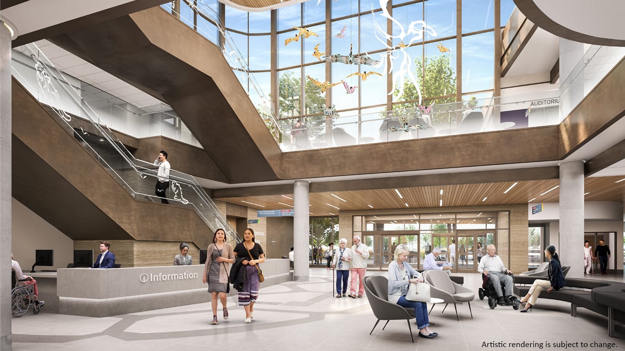 In addition to being LEED Silver-certified, the South Niagara Site is working towards being the first WELL-certified hospital in Canada, incorporating design elements that promote health and well-being for everyone who uses it. These improved spaces will prioritize the mental health and well-being of staff, patients and visitors, creating a positive workplace environment that will help attract and retain healthcare professionals. The hospital will also feature an Indigenous healing space and garden. With our Indigenous partners having provided input into the design, these spaces were incorporated to create culturally safe and welcoming areas for Indigenous Peoples.
