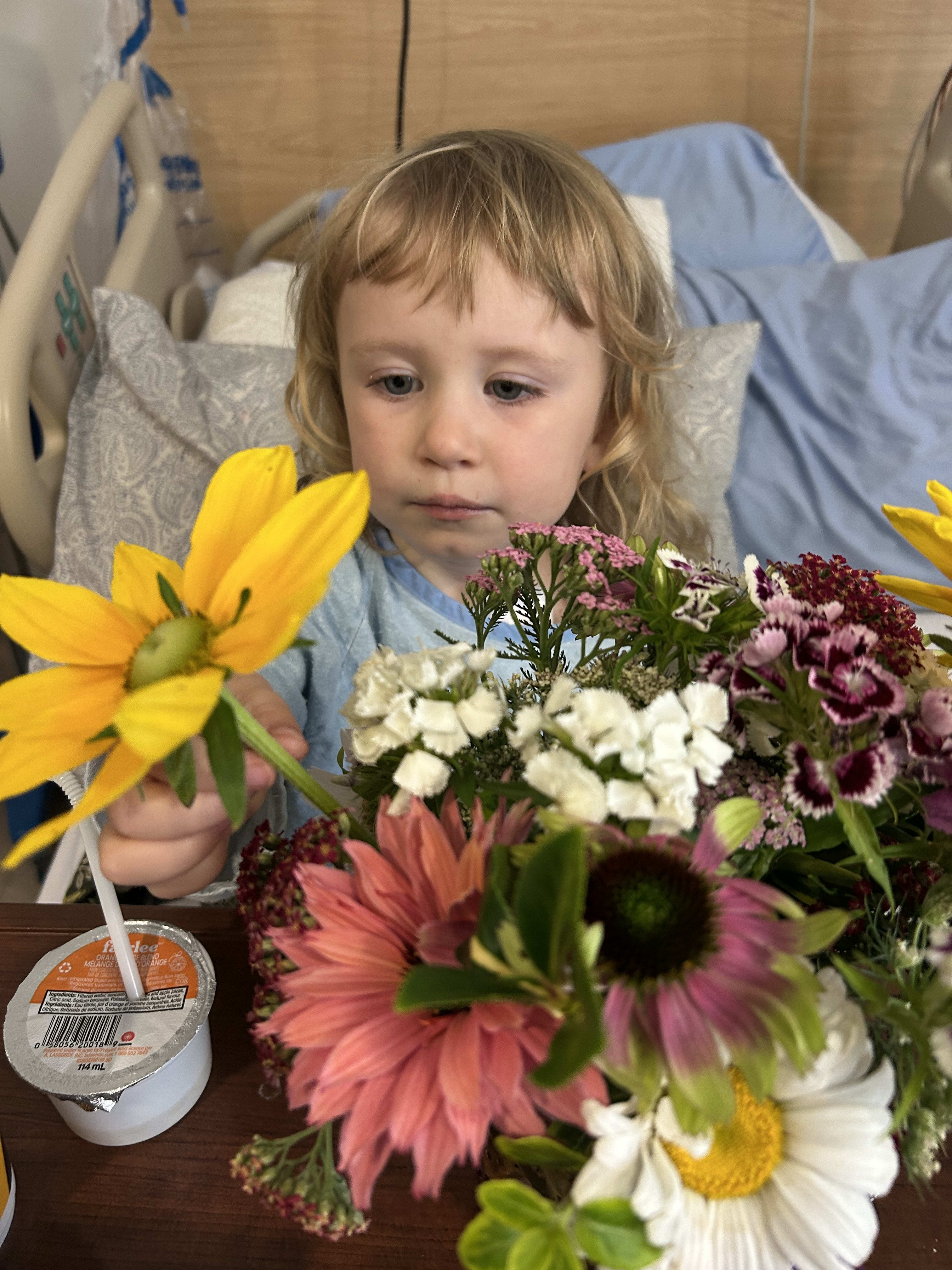 Alexandria Boucher, a pediatric nurse on our Children’s Health Unit, helps make hospital stays less scary for children like Briar. Donor-funded equipment plays a vital role in supporting this care.