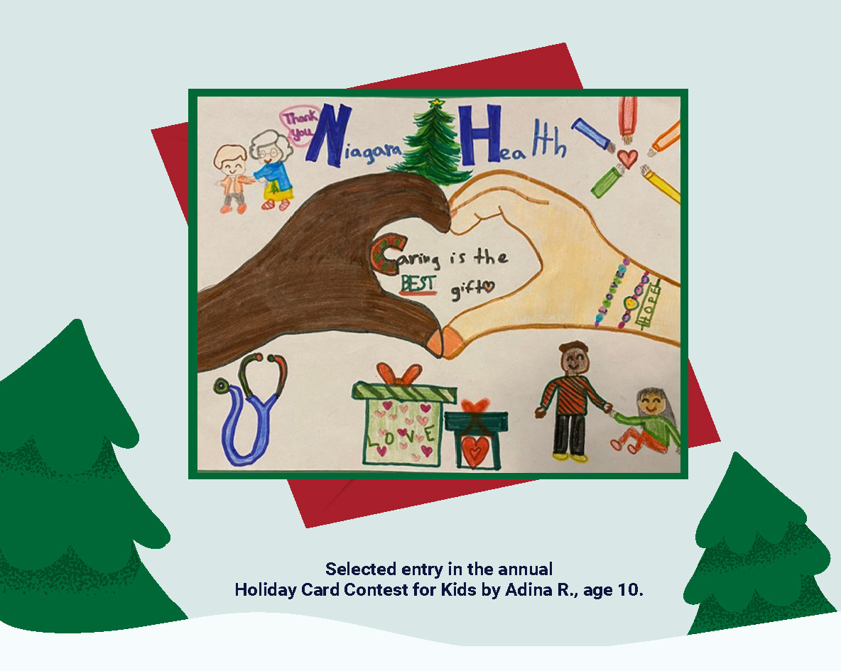 Niagara Health (NH) is pleased to announce the selected artwork for its 2025 Holiday Artwork Contest, an annual tradition that invites children connected to the organization to share their creativity and reflect the spirit of the season. This year’s inspiration was “Caring is the Best Gift of All.”