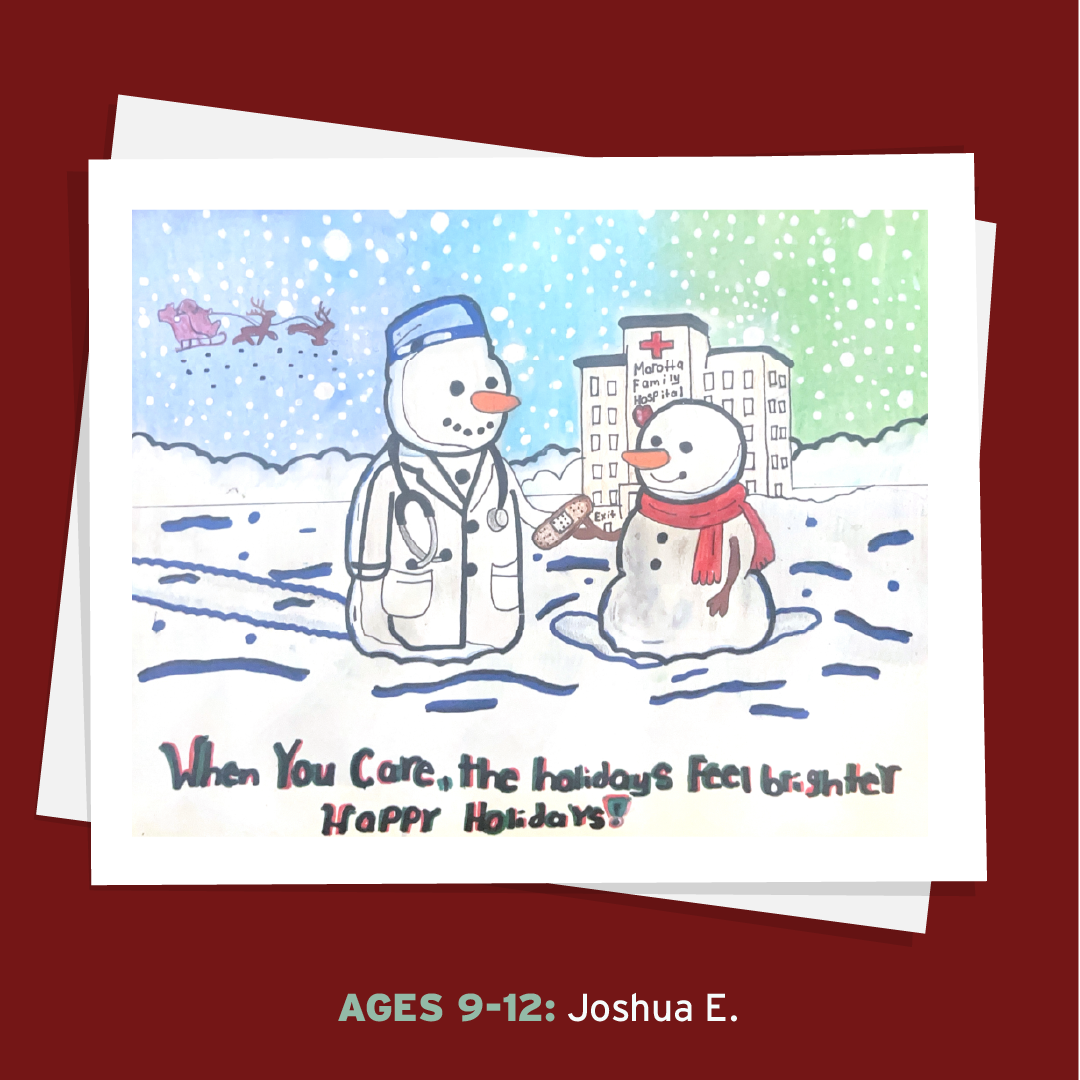 Niagara Health is also recognizing standout artwork across three age categories, as voted by staff. The winning designs will be shared on our social media channels throughout the holiday season to spread messages of compassion and community. Please like and share them.