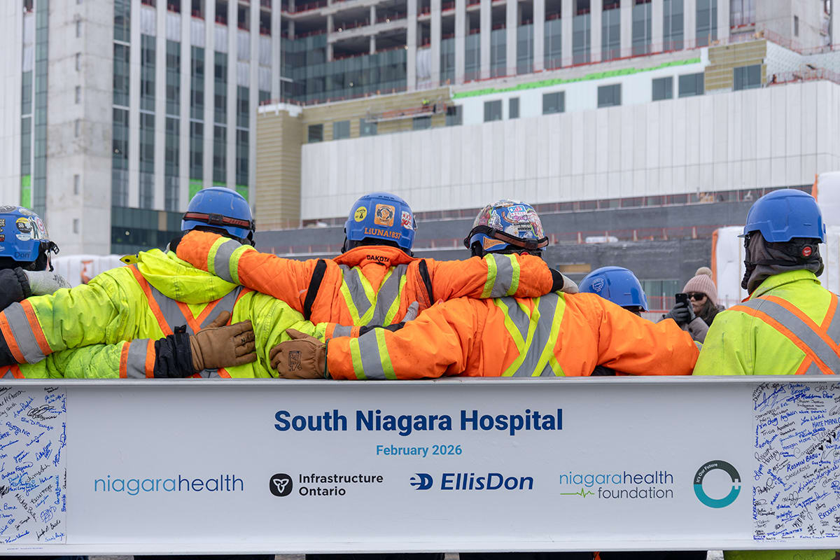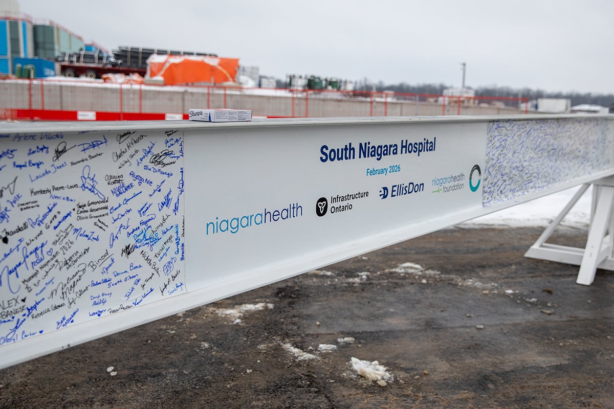 “This beam signing event marks the dedication, hard work and persistent effort of all involved on the South Niagara Hospital project. Reaching this milestone is a testament to the steady, coordinated progress driven by hundreds of individuals working toward a common goal. It also offers a much‑deserved moment of recognition for the skilled tradespeople who have been vital in bringing this site to this point and beyond – none of this would be possible without them. We look forward to continuing our work with Infrastructure Ontario, Niagara Health and the community as we continue to deliver this much‑needed hospital.”