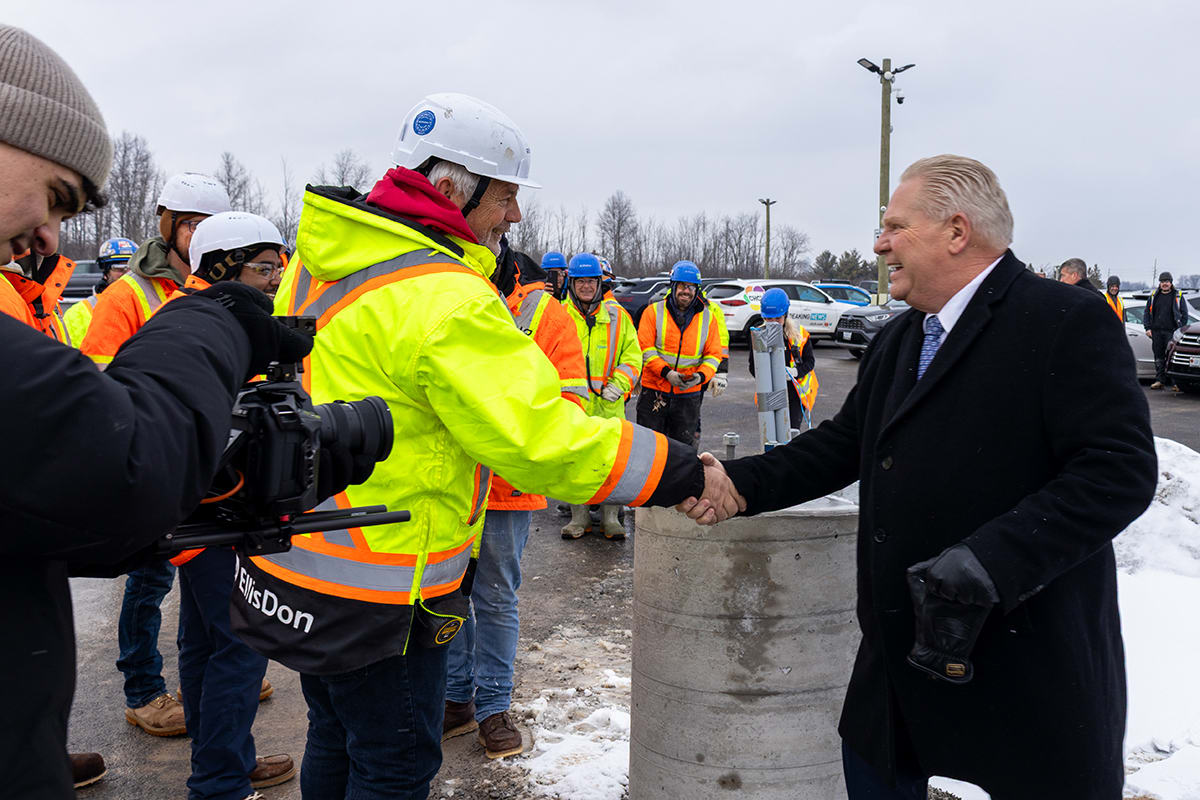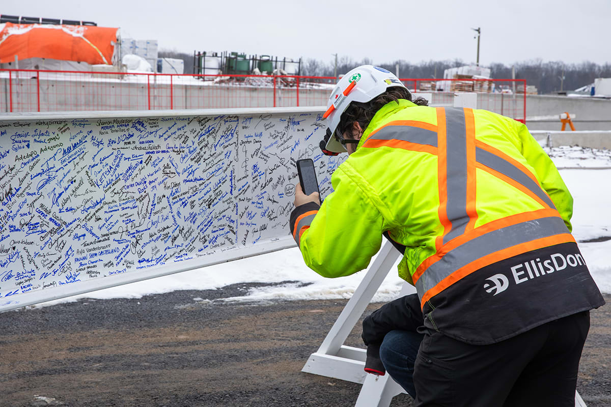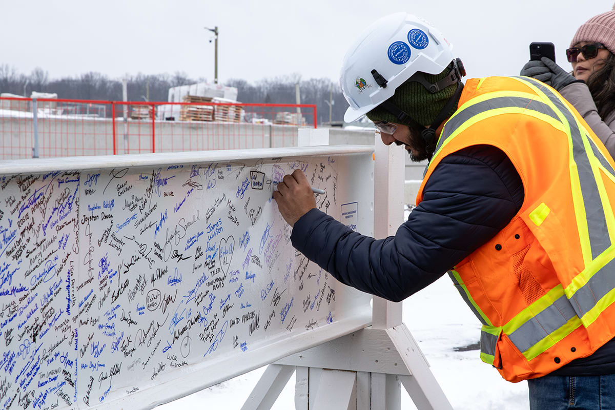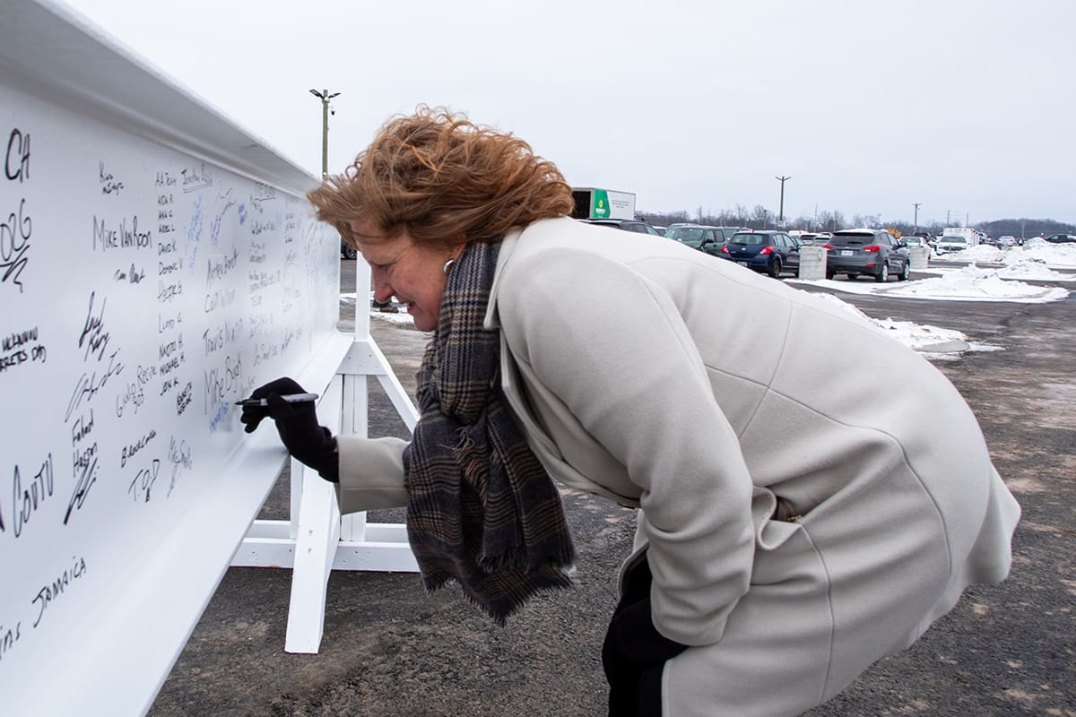 Premier Doug Ford, Sylvia Jones, Deputy Premier and Minister of Health, and Todd McCarthy, Acting Minister of Infrastructure, joined the celebration, each adding their signatures to the beam before it was raised onto the 1.3-million-square-foot facility.