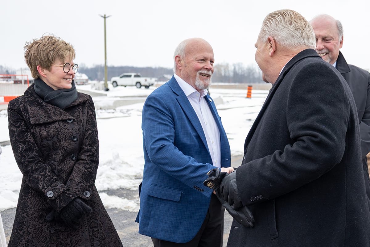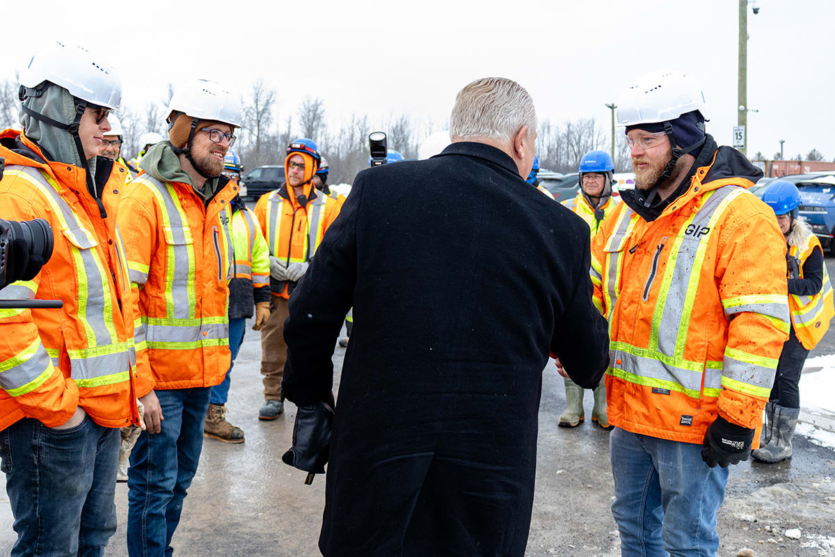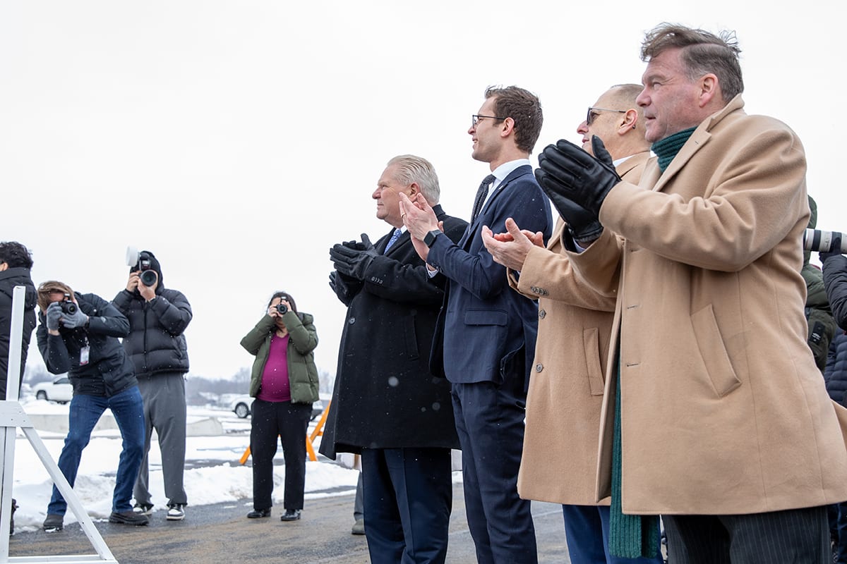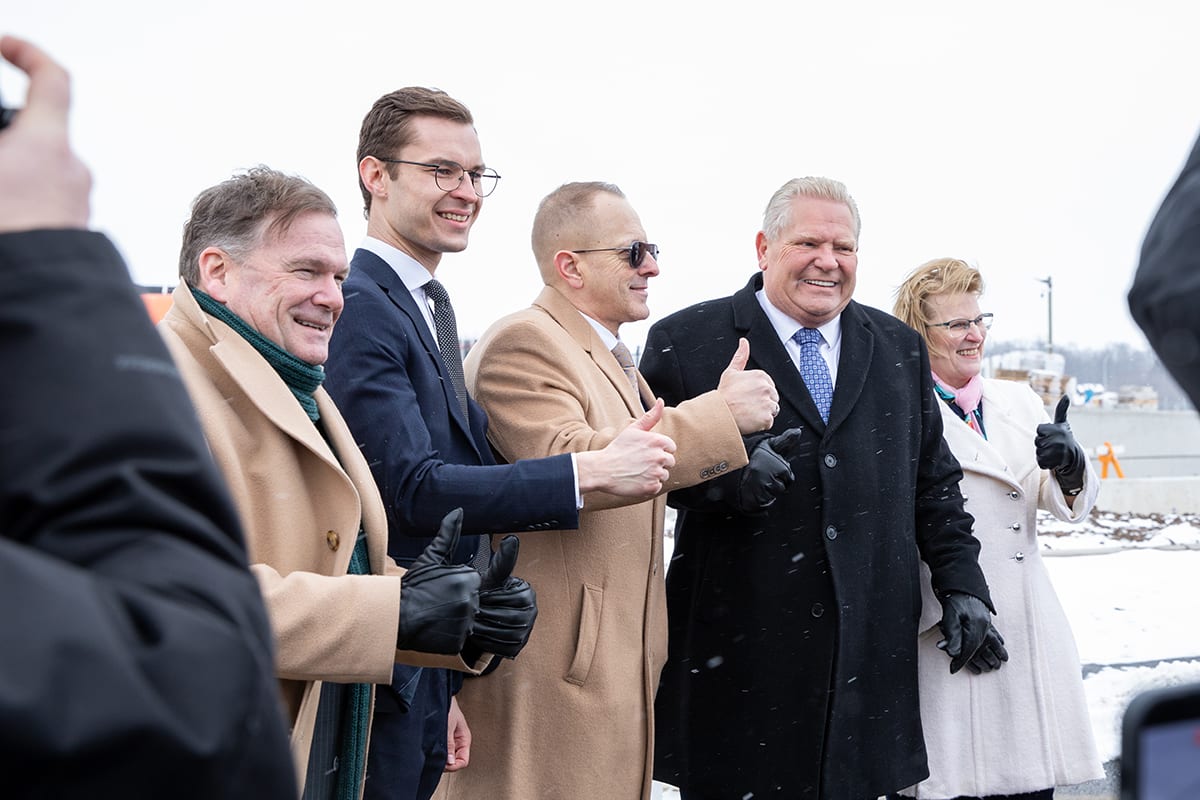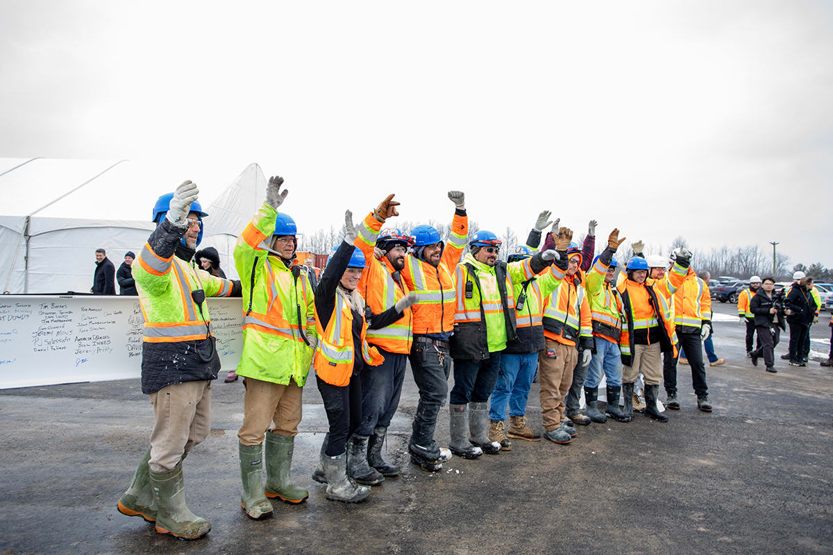 Premier Doug Ford, Sylvia Jones, Deputy Premier and Minister of Health, and Todd McCarthy, Acting Minister of Infrastructure, joined the celebration, each adding their signatures to the beam before it was raised onto the 1.3-million-square-foot facility.