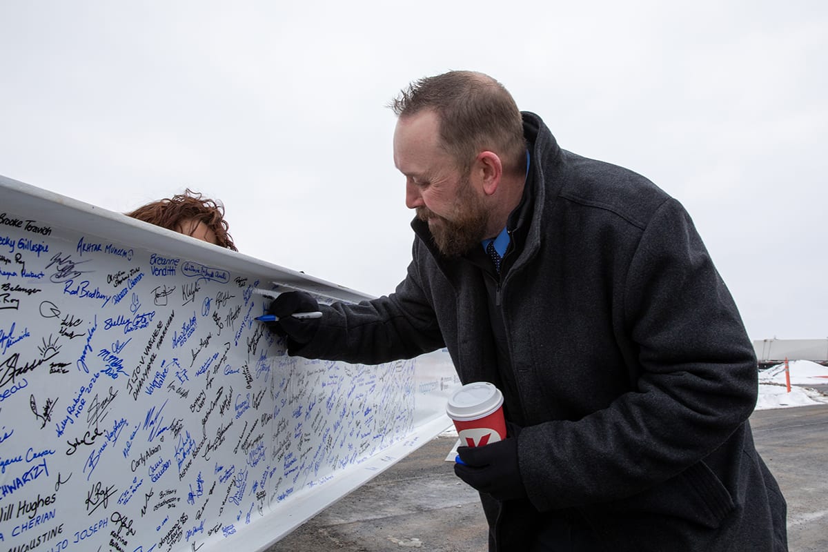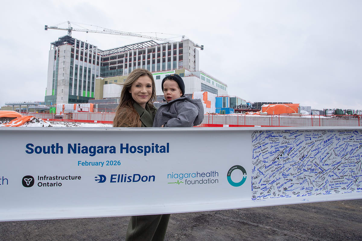 Less than three years ago, donors, elected officials and community partners joined Niagara Health and the Niagara Health Foundation on an empty field at the corner of Montrose and Biggar roads in Niagara Falls to break ground on what will become the future of hospital care in Niagara. On Feb. 25, that same group came together again — this time to sign one of the final structural beams and watch as it was lifted into place atop the 12-storey South Niagara Hospital.