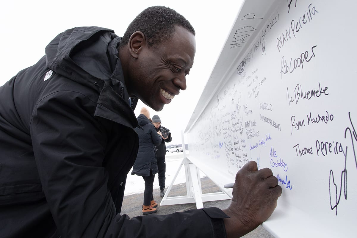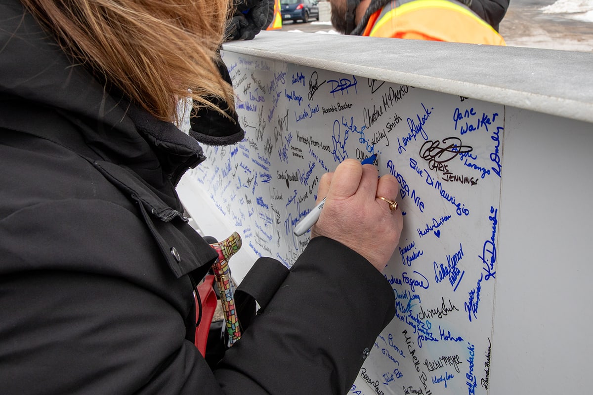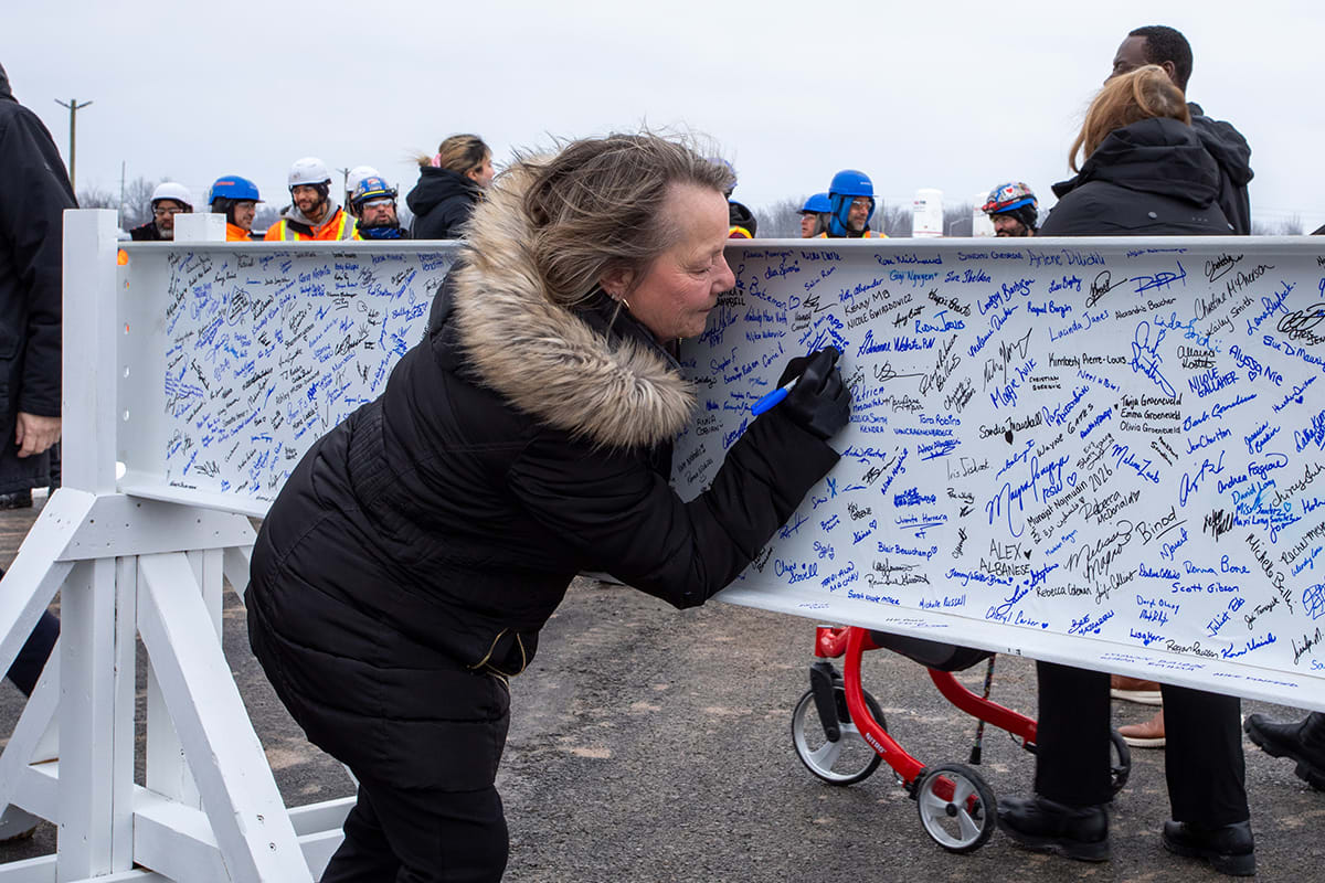 At seven metres long, the beam carries the signatures of thousands of individuals who have played a role in bringing this project to life, including construction workers, healthcare staff, physicians, patients, donors and community members. Because the beam itself could not be transported, commemorative signing panels toured all Niagara Health sites, allowing people across the organization and community to leave their mark. The panels were later affixed to the beam ahead of the ceremony, ensuring this milestone truly reflected the collective effort behind the project.